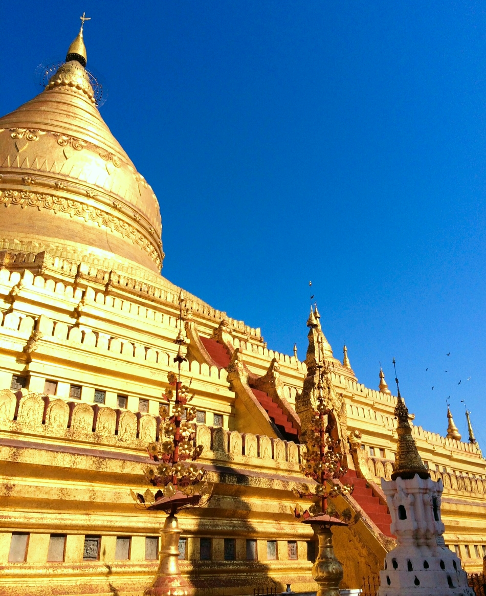 Bagan is truly an amazing place, it is filled with such culture and vibrancy of life. It also has strong ties to the past, with old temples that spot the landscape. We visited Swezigon Pagoda, it is huge and has gold stupas reaching to the sky. There are ornate golden stands with Lotus flowers lined the perimeter of the Pagoda. Birds flew by and perched on the golden flowers.
